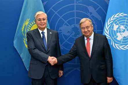 Президент Казахстана Касым-Жомарт Токаев встретился с генеральным секретарем ООН Антониу Гутерришем на полях 78-й сессии Генеральной Ассамблеи ООН, которая проходит в Нью-Йорке. Об этом сообщает пресс-служба главы государства.