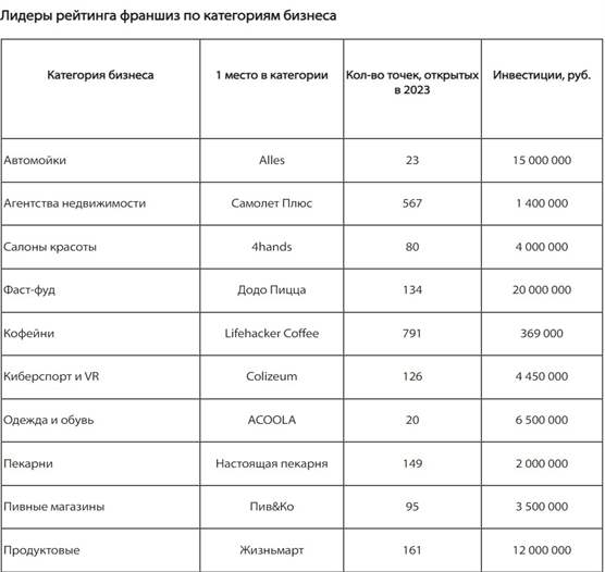 По отраслям больше всего обращает на себя внимание ситуация с франшизами кофеен. В этот раз ни одна из компаний этого направления не смогла добраться даже до первой двадцатки, хотя ещё в прошлом периоде здесь было сразу два бренда.
