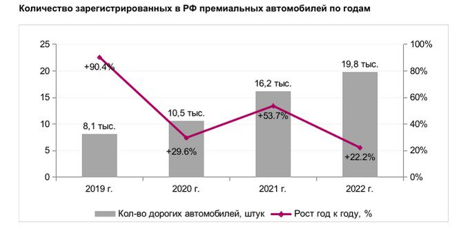 В 2022 году российский рынок премиальных автомобилей дороже 10 млн руб. показал значительный рост. По данным Федеральной налоговой службы, таких машин в России стало на 22,4% больше, чем в 2021 году. Это свидетельствует о том, что спрос на роскошь в нашей стране не снижается даже в условиях экономического кризиса.